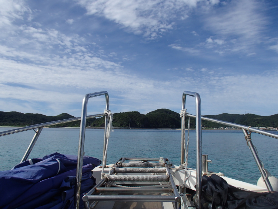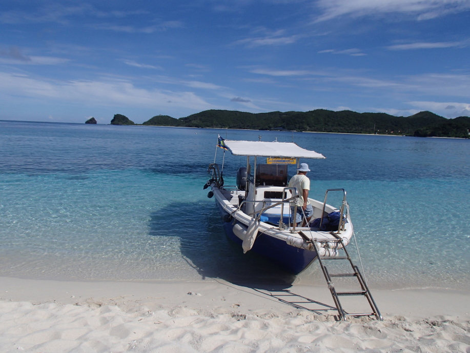 しばらくすると、送迎船の宮平さんがやって来ました。