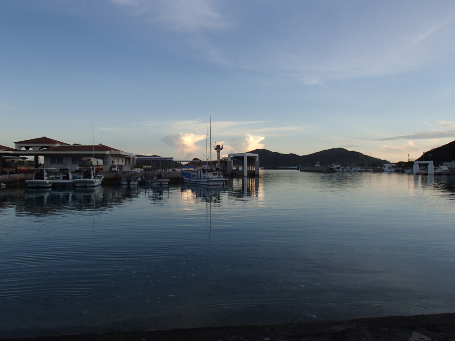 1時間も居ないくらいで店を出て、「105スーパー」でもう1杯お酒を買い、港でしばらく夕涼みをしながら過ごしました。