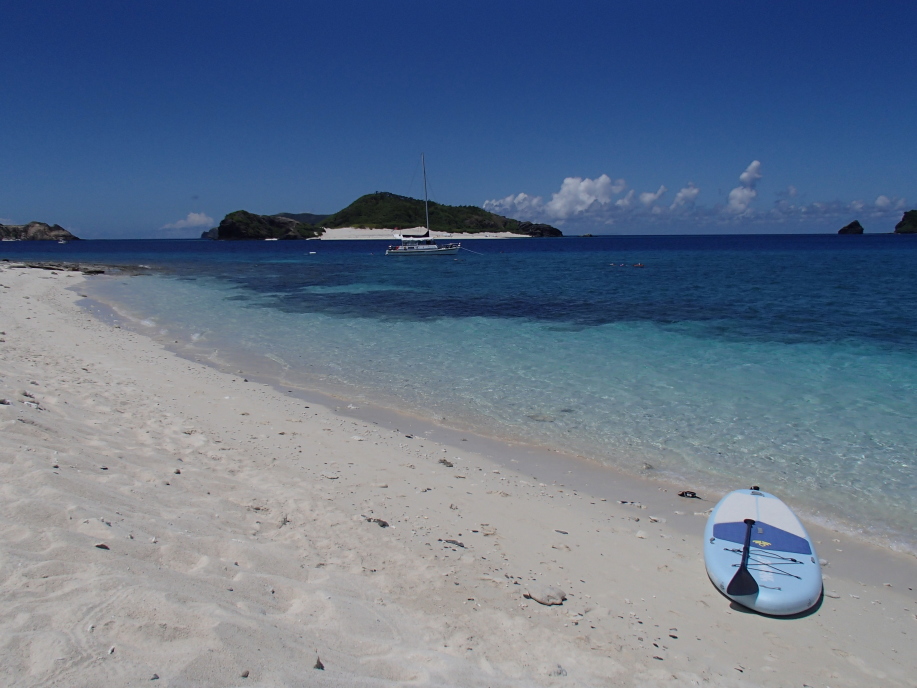 沖の方から見て見ると、確かに無人島とは思えない位の用具が設置されていたんですが、私達がいつもテントを張る辺りは大丈夫そうだったので、上陸する事にしました。