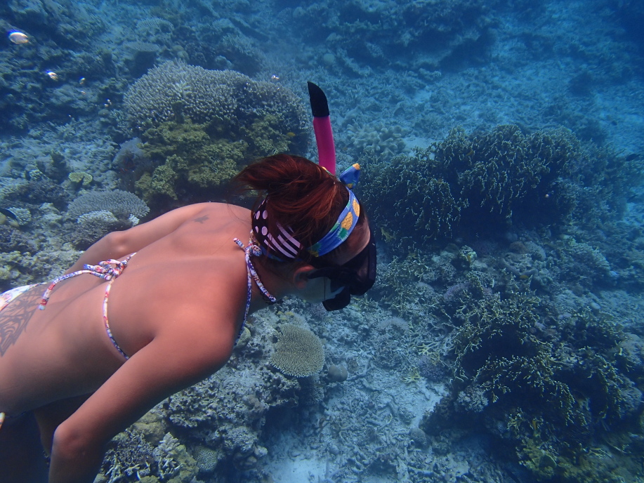 島の周囲を回りながら泳いで行くと、目の前にキャバ嬢の娘が潜って私の下を泳いで行きました。