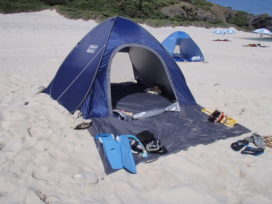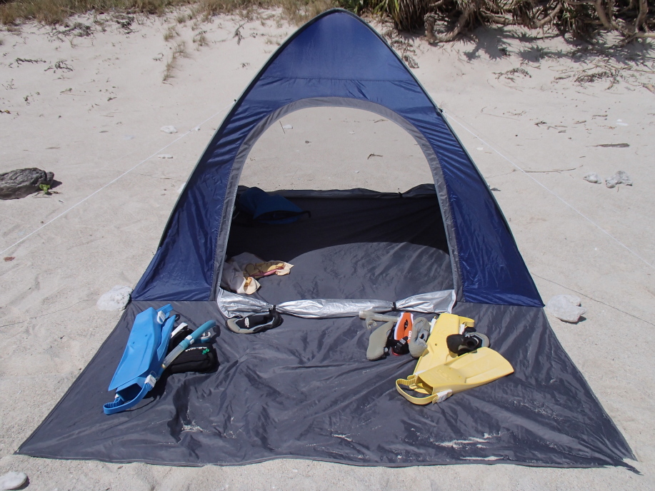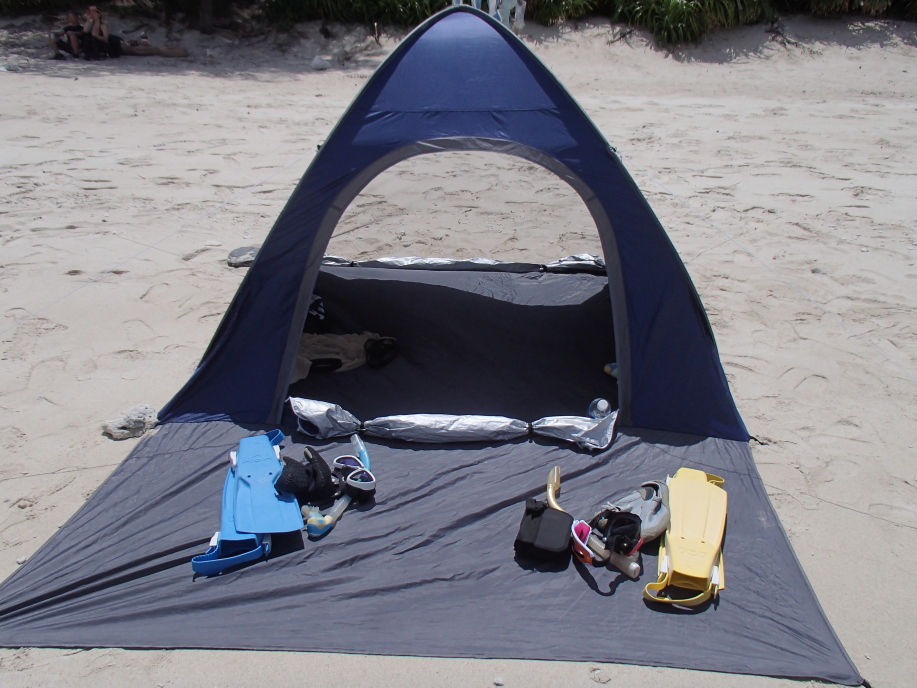テントまで戻って来ると、かなり暑くなっていたので、すぐに海に飛び込みました。