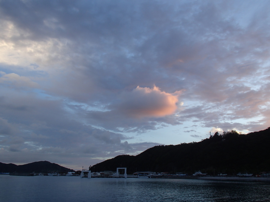うちの家からも、たまにこんな色した夕日が見えるんですが、「座間味島」だと山と海しかないので、一段と綺麗に見えました。