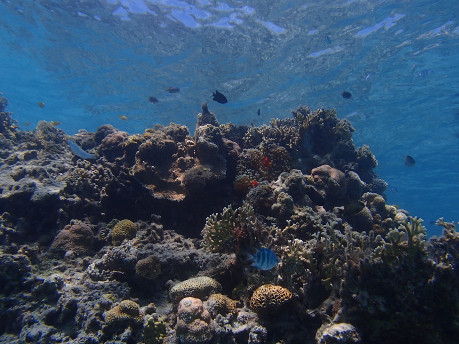 サンゴ礁の範囲がかなり広くて泳ぐのに疲れたので、右方面を一泳ぎして一旦上がって来ました。