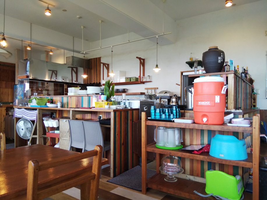 「古宇利島」まで来たんですが、相変わらずの土砂降りで、取り敢えずランチする店を探して島を2週ほどして探したのが、この店「Cafe フクルビ」でした。