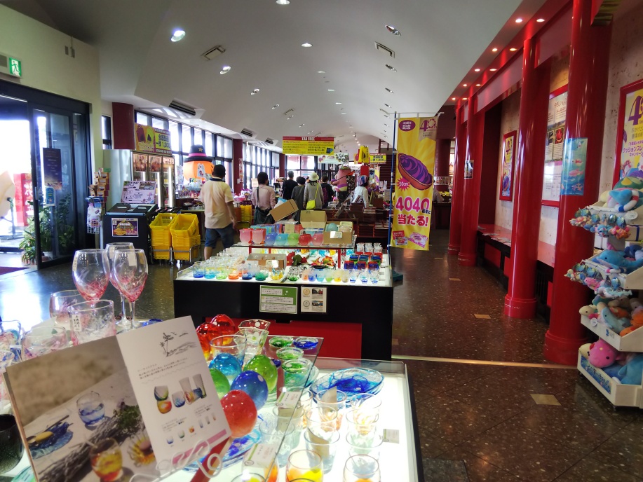 食事が終わって雨が止んだら「古宇利オーシャンタワー」にでも登ろうと思ってたんですが、相変わらず雨が降り続いてたので諦め、橋を戻った場所の「美らテラス」まで戻りました。