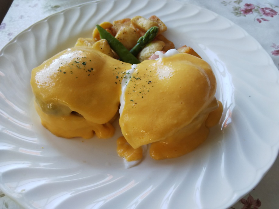 最後に 私がお勧めしていた、Tダさんが注文した「エッグベネディクト」です。