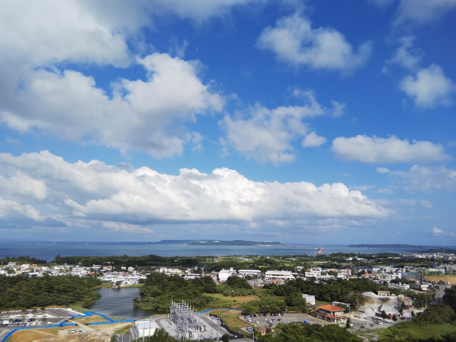 展望台から古宇利島方面を眺めたんですが、やっぱり空は どんよりでした。