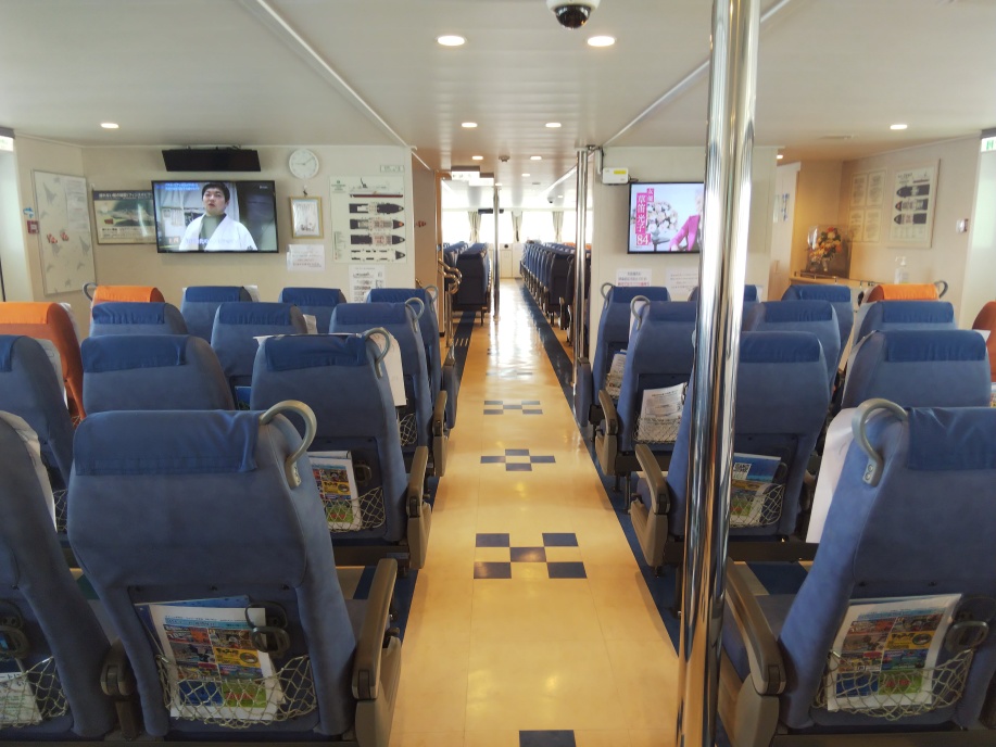 乗船客が減っているので余裕で座れるんですが、いつものように出航の1時間前には乗船してました。