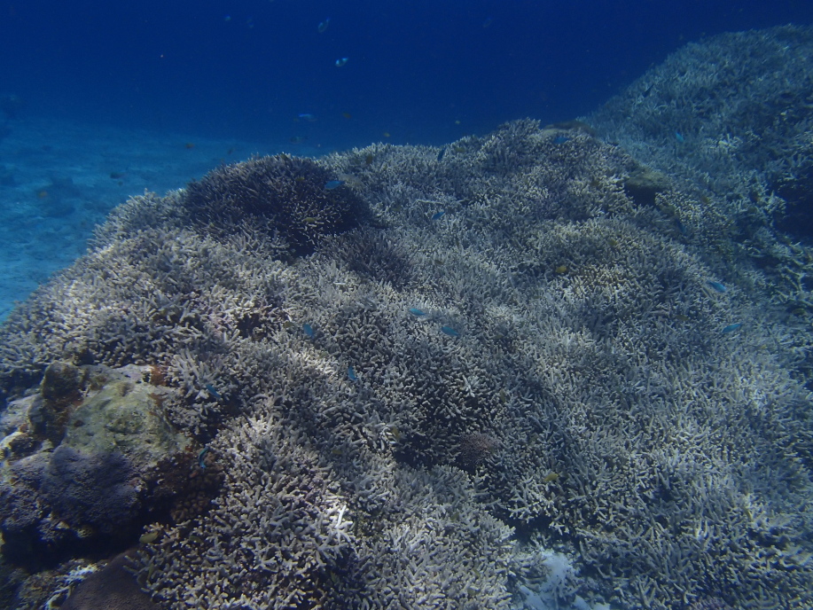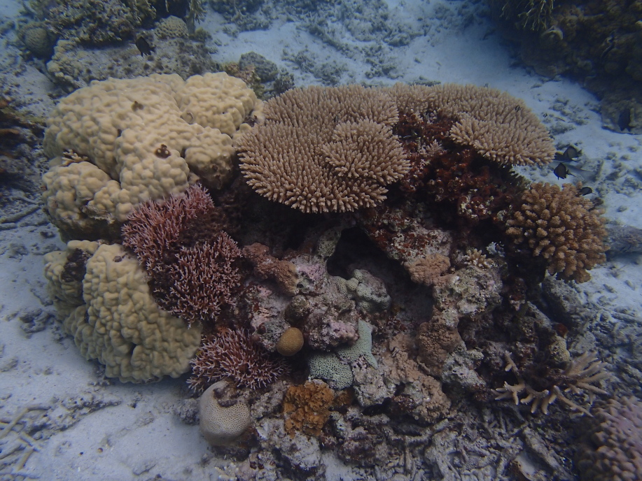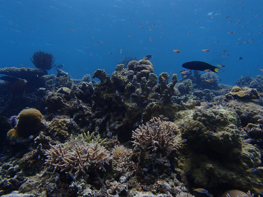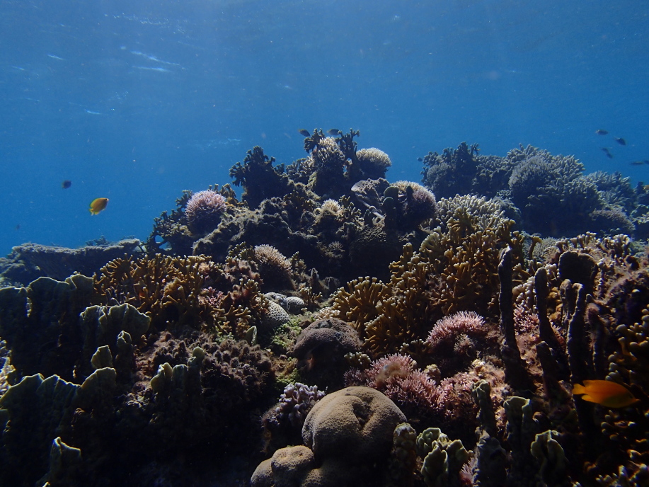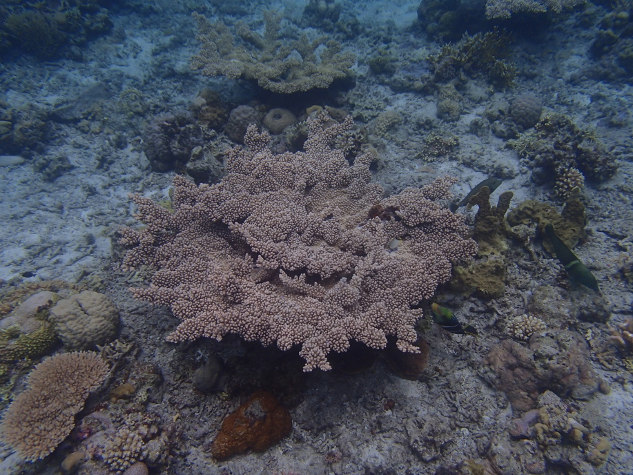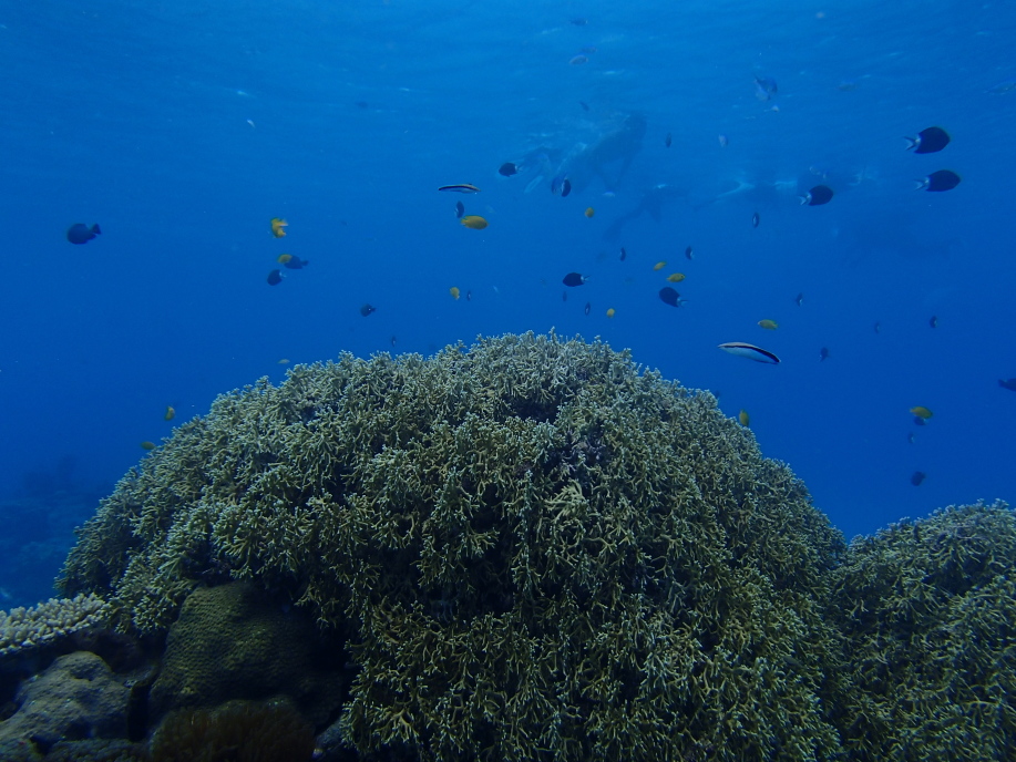 暑くて海に飛び込むと、意外と綺麗に珊瑚が見れました。