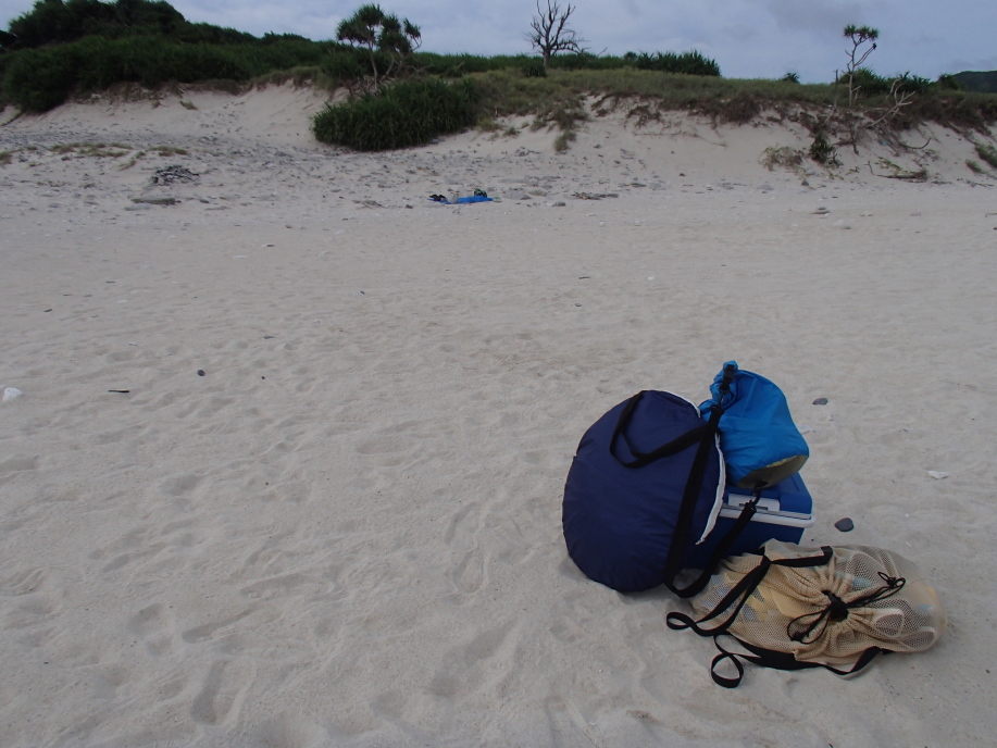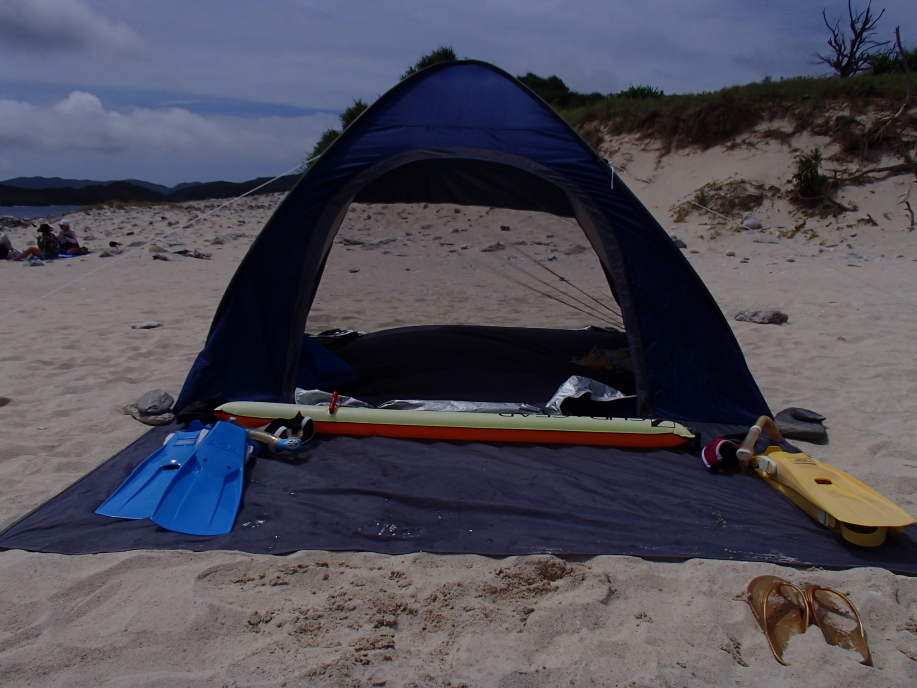 レンタルパラソルが無くなった辺りで、マイテントを設置しました。