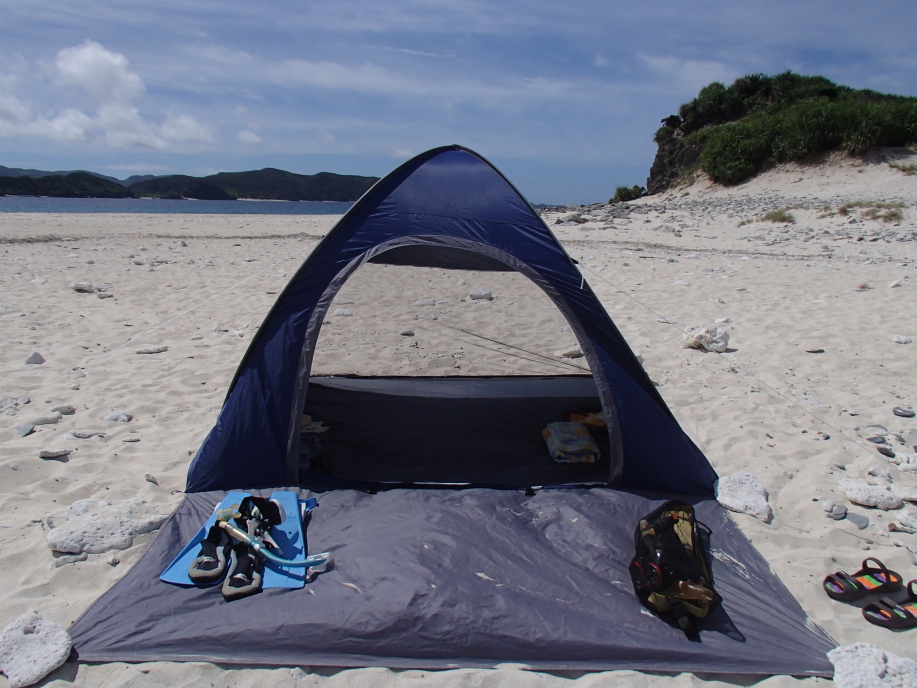 何回も海に入っても同じところしか見れないので、テントで昼寝をして過ごしました。