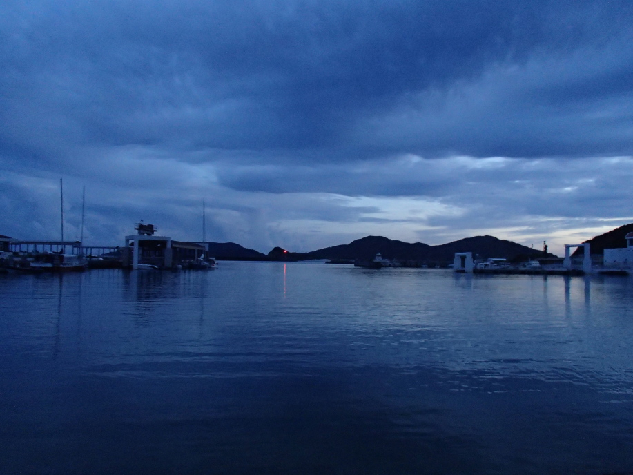二次会も港へ行ったんですが、今日は空模様が少しくもりだったので暗くなるのも早く、1杯飲み終える頃にはほとんど真っ暗になってました。