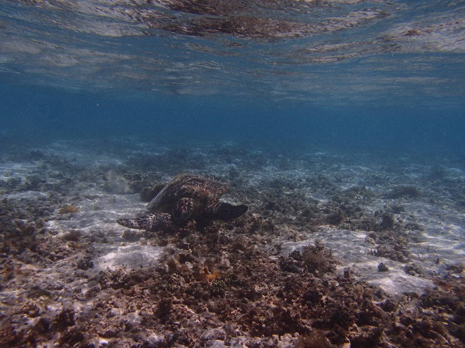 遊泳区域へ戻って来ると、ウミガメを見つけました。