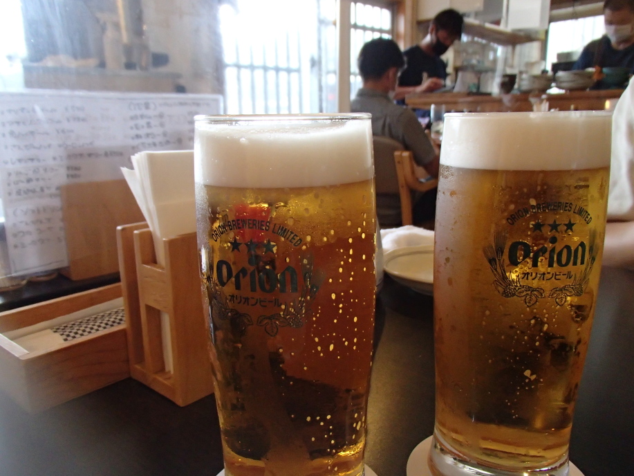 「まるみや」ではビールはジョッキなんですが、ここはおしゃれにグラスビールでした。