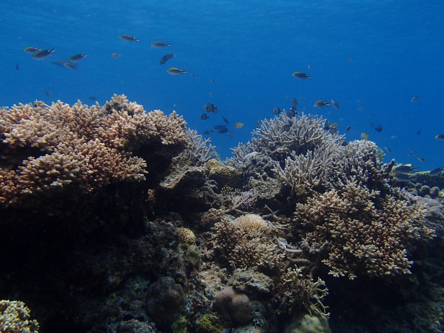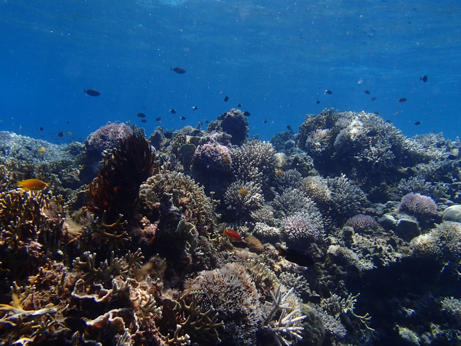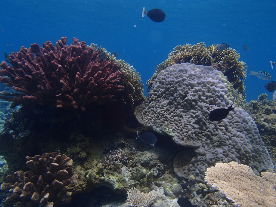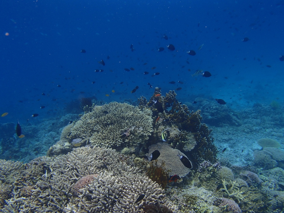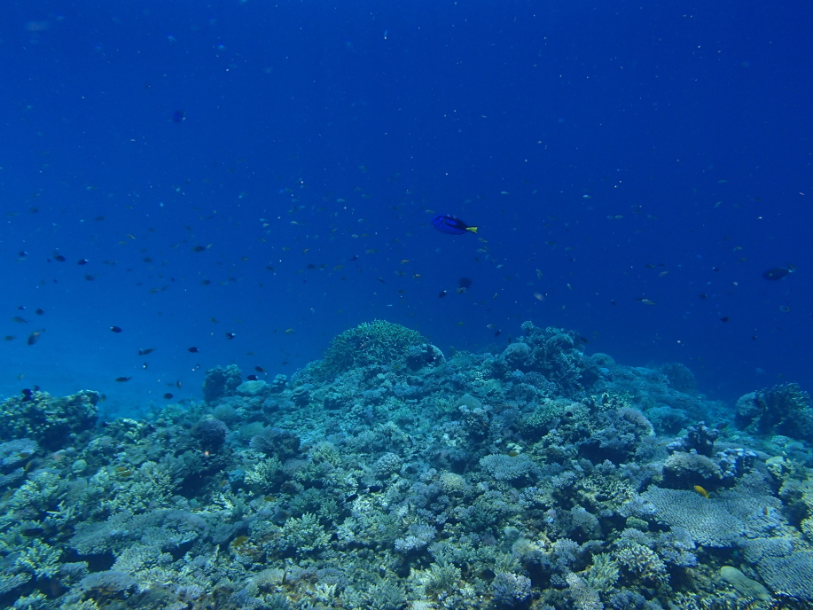 水深自体は浅かったんですが、この珊瑚の群生の位置までは結構深く、潜って見ると大分深さが有り、水面まで戻るのが遠くなってました。