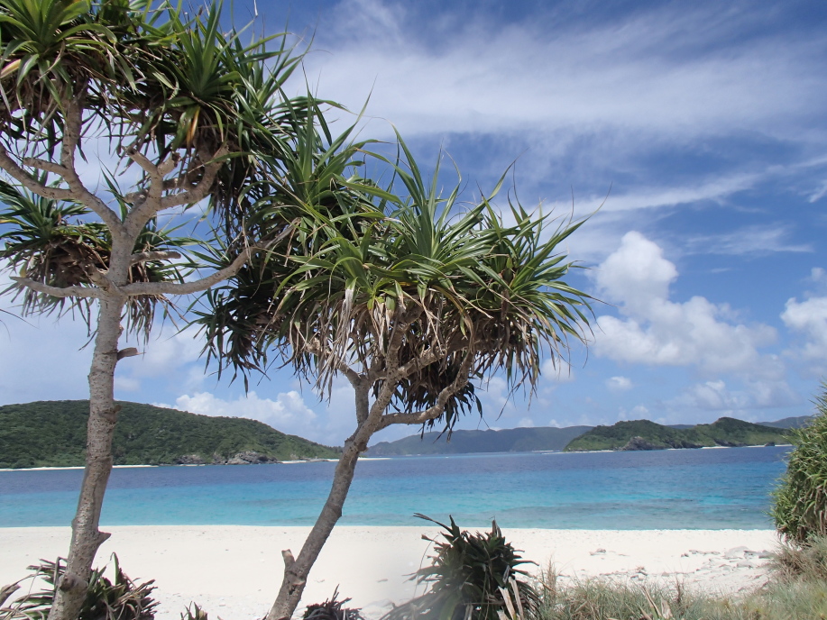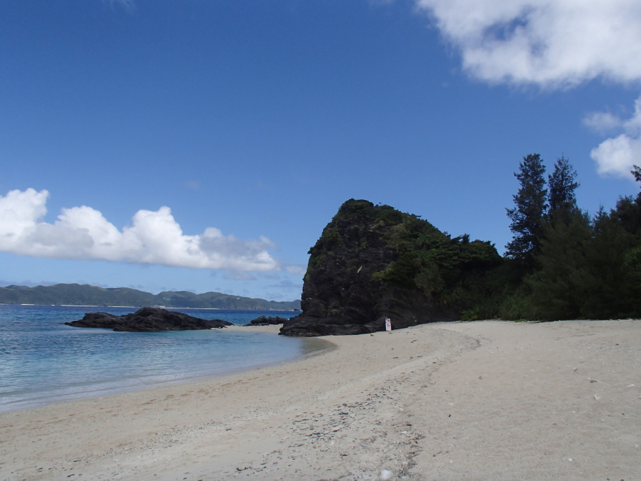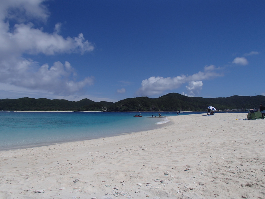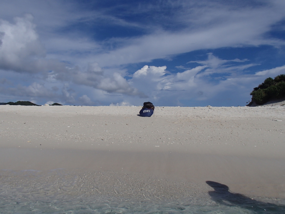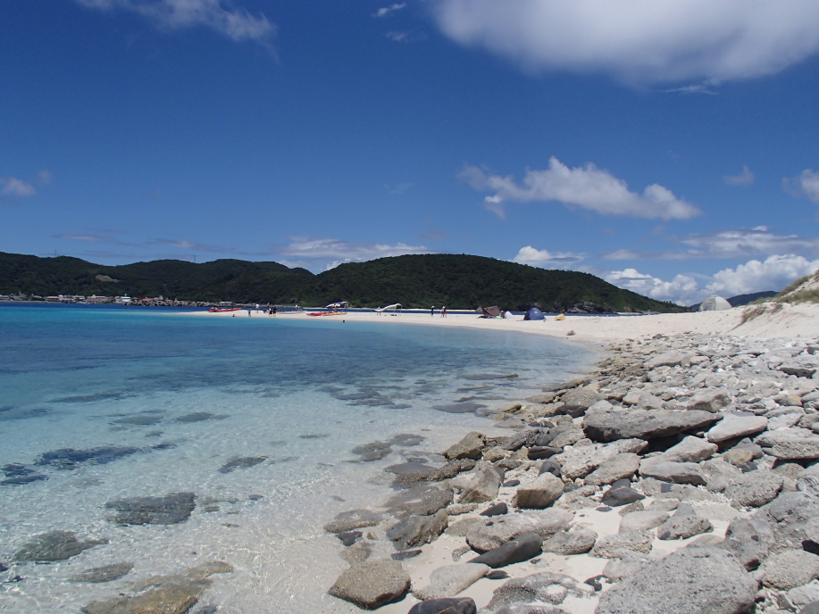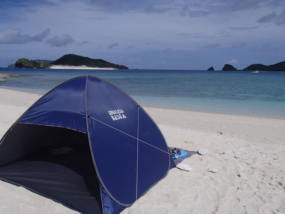 安慶名敷島へ上陸すると、今日も まずまずの天候で、昨日と同じ場所にテントを設置しました。