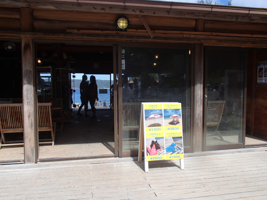 パラソルが立ってないビーチの奥の方へ向かおうとすると、係員のお兄さんが遊泳区域の説明を長々と始めたので、軽く聞きながら砂浜を歩いて行きました。