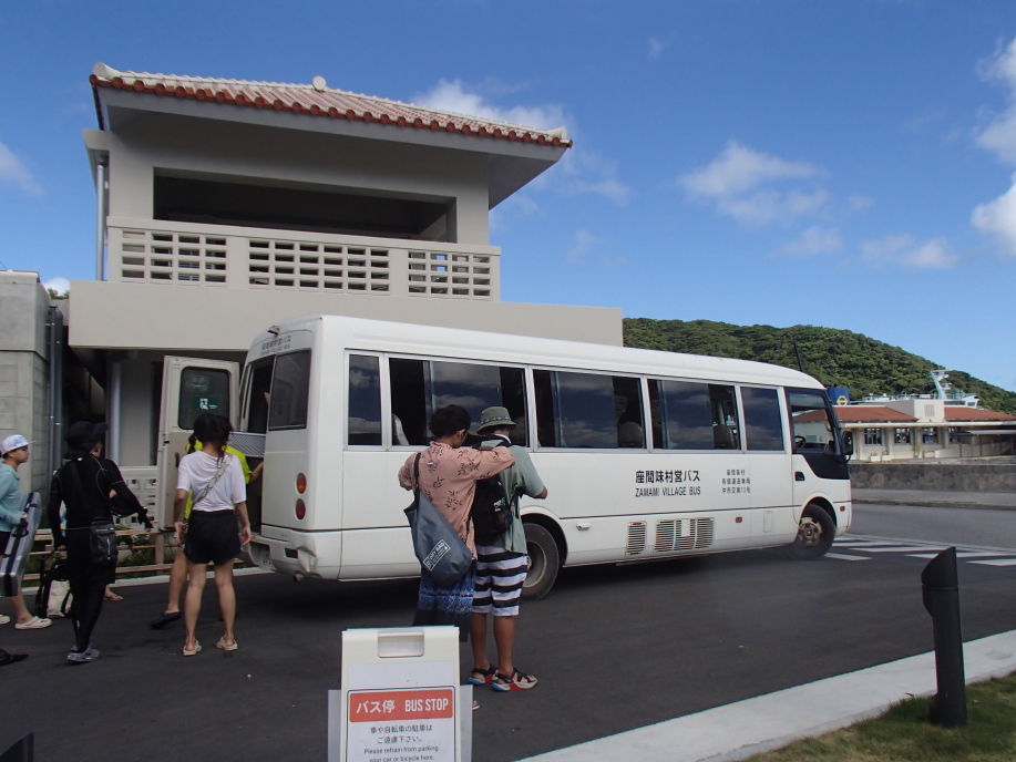 バスには何処行きとかは書いて無いので、皆が乗り込む時に念のため「古座間味ビーチ」行きじゃないか運転手さんに尋ねると、違うとの事で、また戻って来るのを待って乗り込みました。