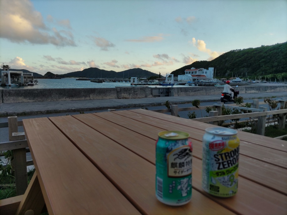 港から宿に向かって歩き出すと、出航しかけてた、渡し船の宮平さんに遭遇し、「明日の送迎ですよねー!」と言われてOKサインを出したんですが、今日も無人島渡しをお願いできるか慌てて大声で聞いて見ると、今日はバタバタしているとの事で、無理そうだったので諦めて、明日の朝の送迎だけお願いしました。