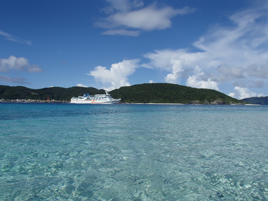 今日の阿嘉島は快晴の天候だったので、3階デッキに登って写真を撮っていると、乗船客から歓声が聞こえる程でした。