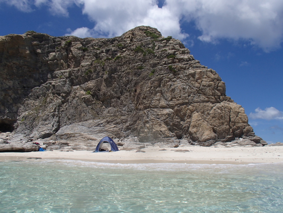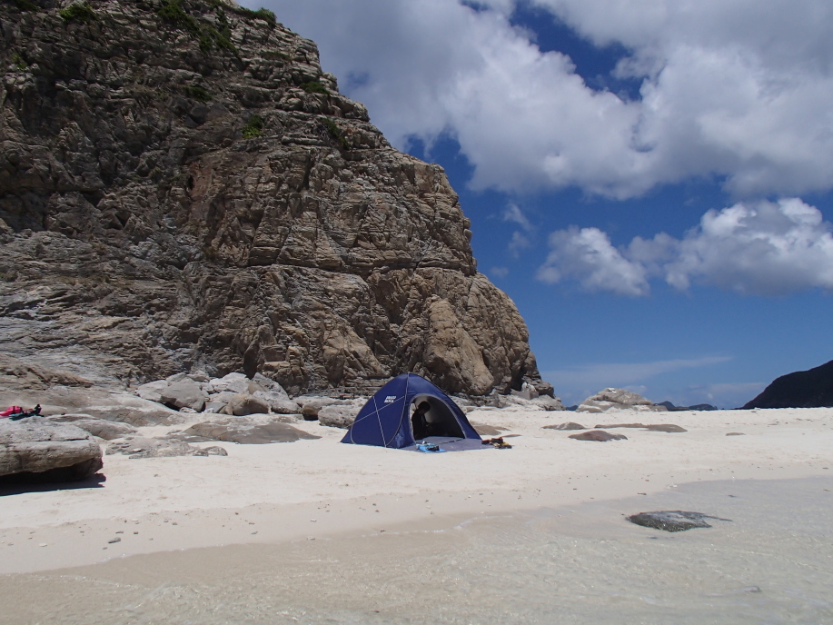 テントを設置して、すぐに海に飛び込みました。