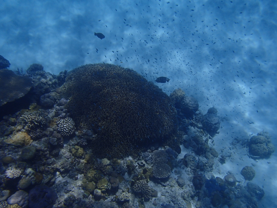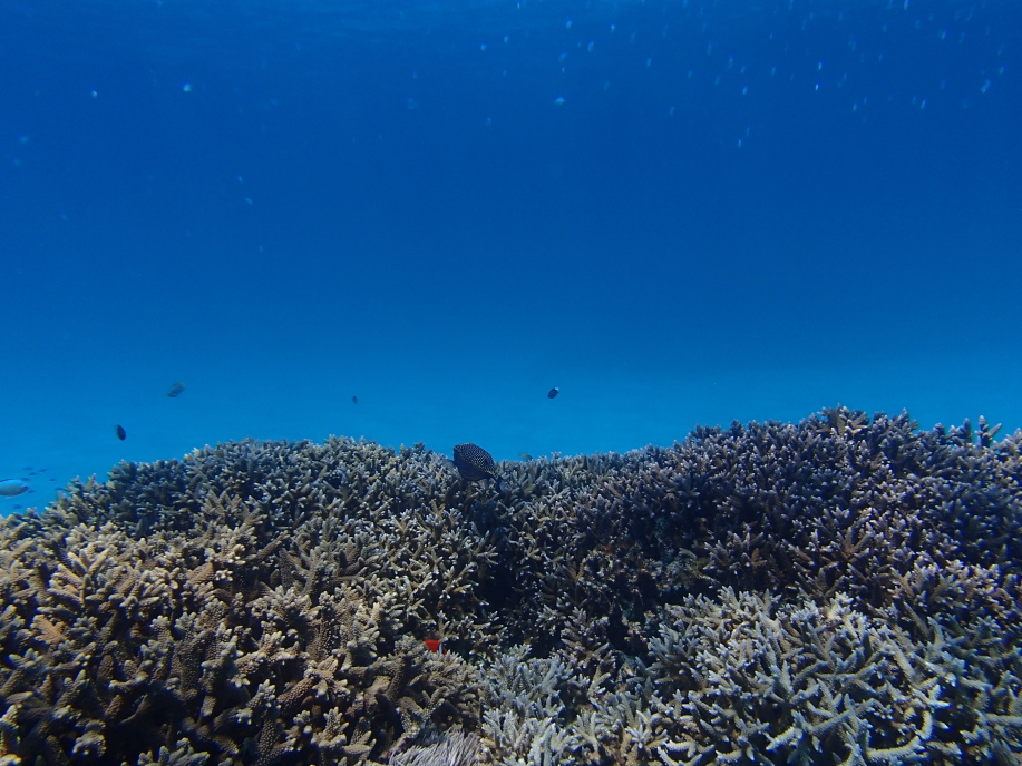 帰る途中に枝珊瑚の残骸らしきものが沈んでいるのは見えたので、もしかすると浅瀬の珊瑚は死滅したのかも知れません。