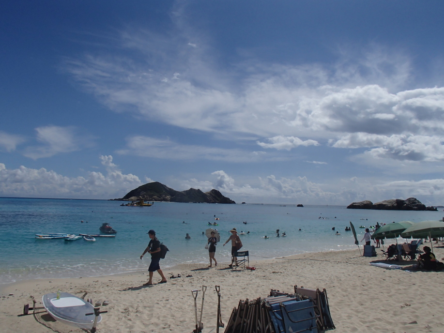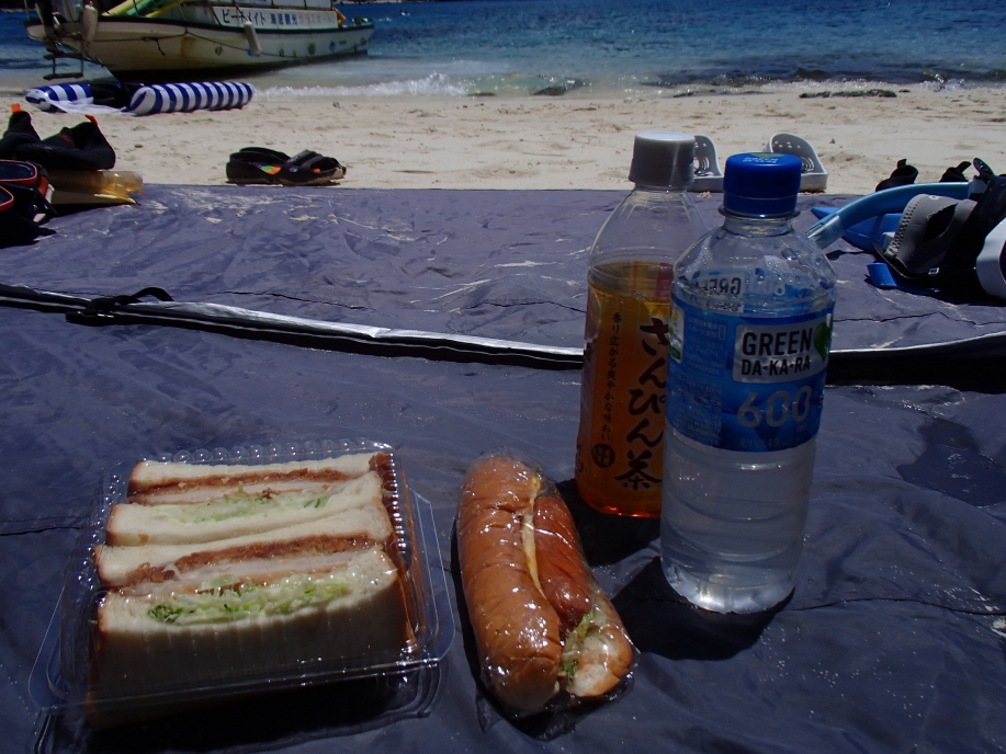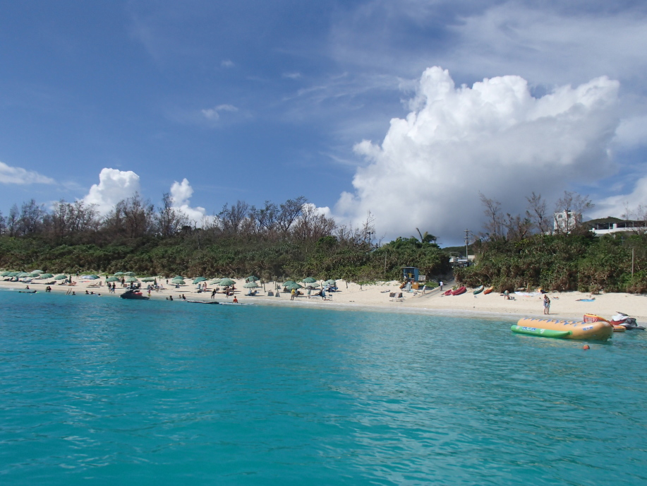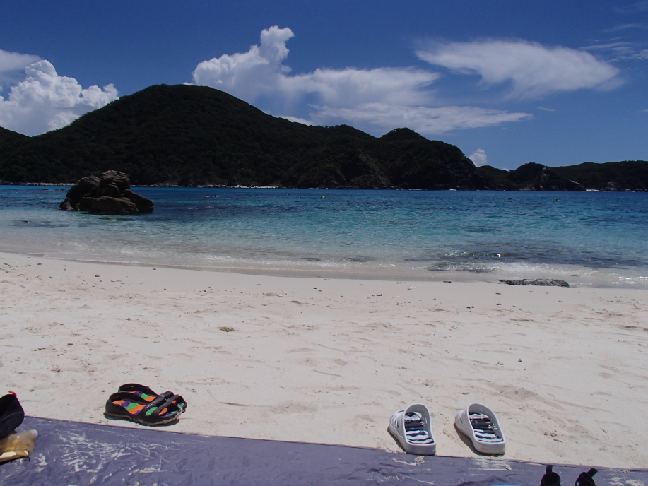 ビーチからの出発時間が15分後くらいだったんですが、とても暑過ぎて阿波連ビーチで足だけつかりました。