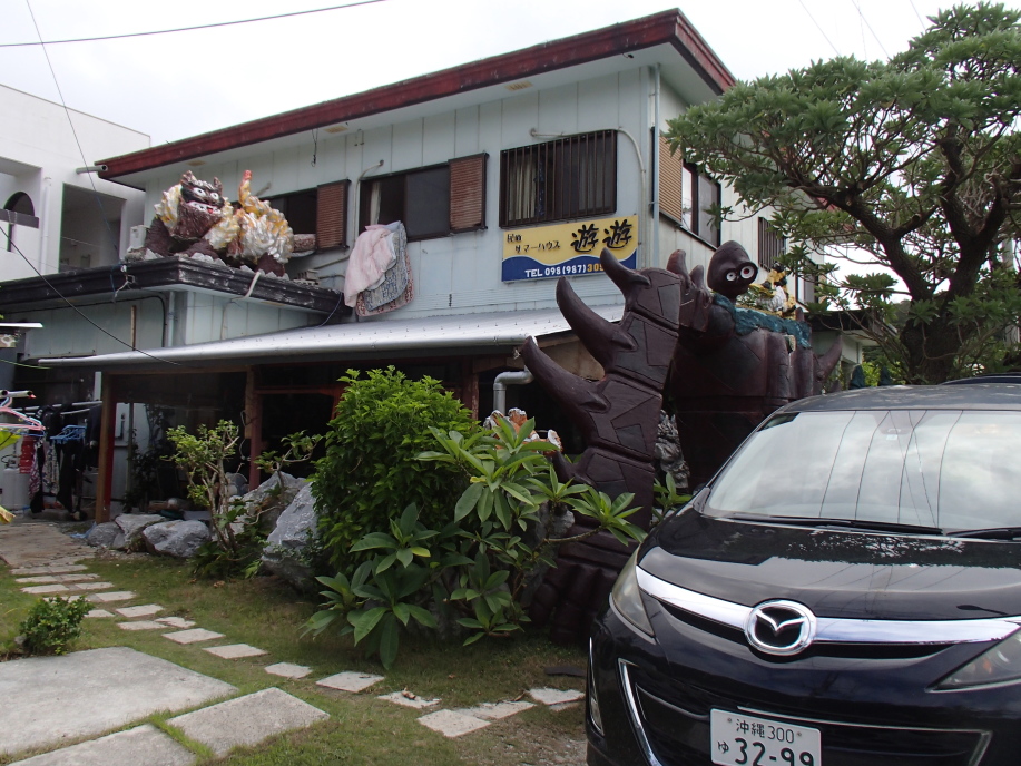 港で宮平さんを見つけて、11時出発で渡し船を予約し、宿「サマーハウス遊遊」へ歩いて行きました。