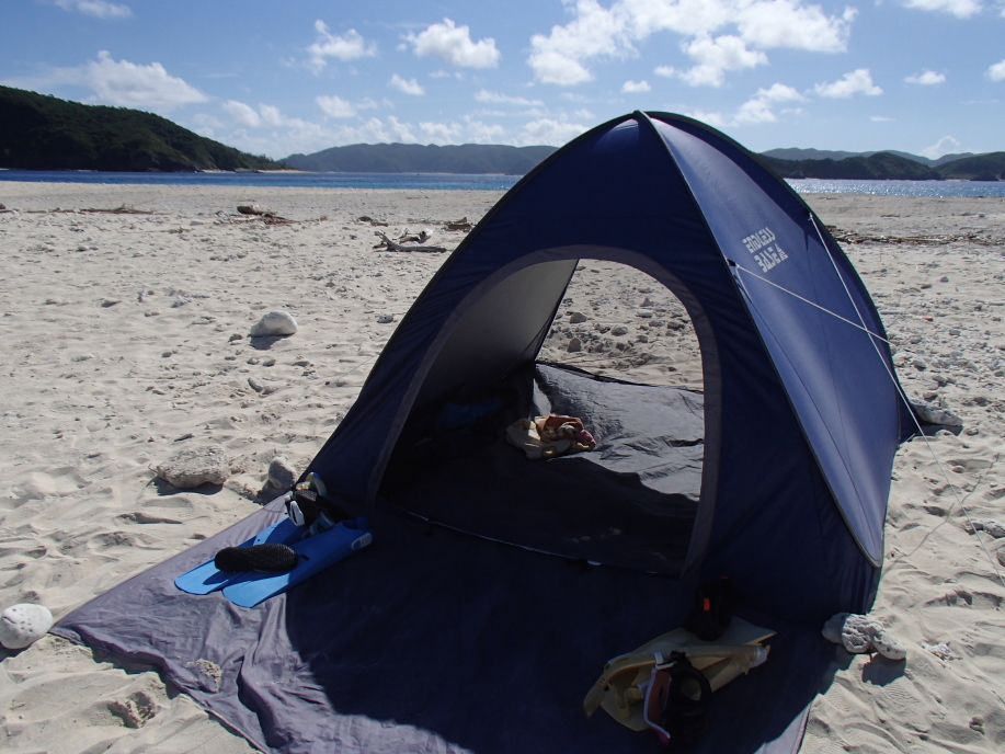 ただ、水に入って見ると、思っていた海流の流れと逆方向だったので、かなり一生懸命泳いで元のテントの場所へ戻る事になりました。