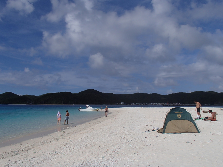 港へ着いて、明日の送迎時間を宮平さんに告げて船を降りたんですが、テントを船で預かってくれるとの事で、船に置いて行きました。