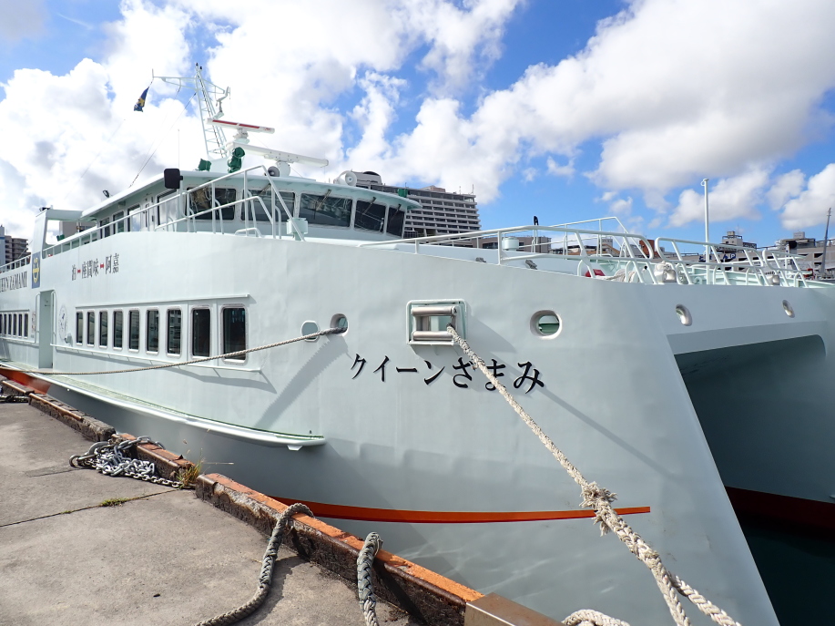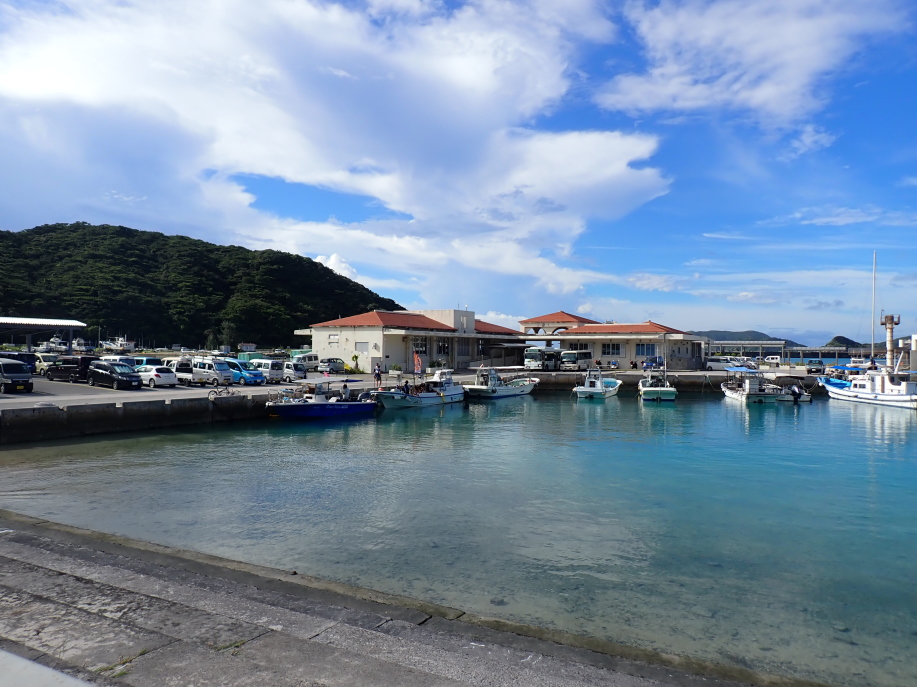 港まで戻ると、LINEで今日と明日の送迎を宮平さんに予約してて、船も居たので すぐに安慶名敷島へと出航となりました。