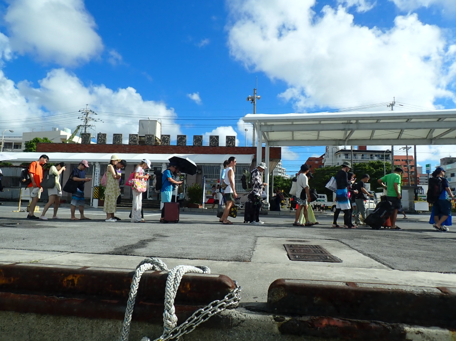 宿で急いでシャワーを浴びて着替えを済ませ、早々と高速船乗り場のベンチに座って、船が到着するのを待ちました。