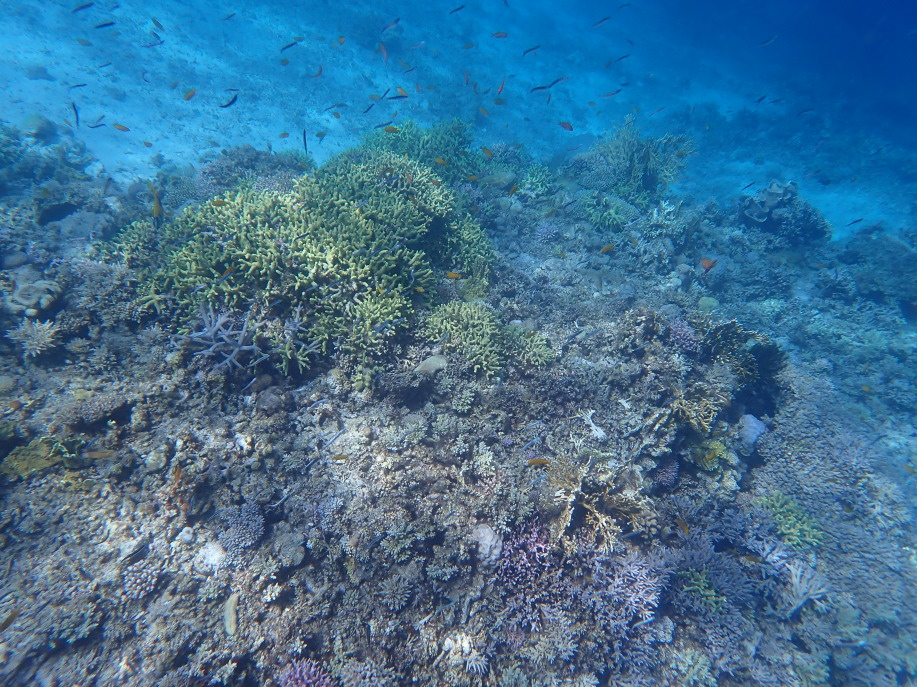 そろそろ帰りの時間も近づいて来たので、沖の方の緑色の珊瑚の群生まで真っすぐ泳いで見て来ました。