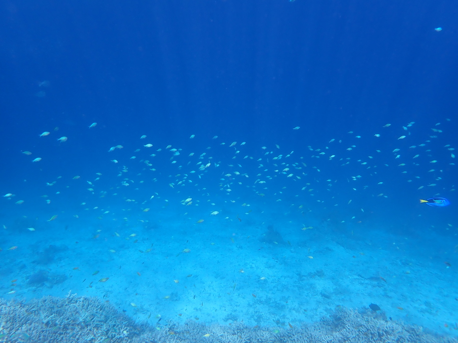 そこから左方面へ泳いで行くと、小魚の群れがたくさん居ました。