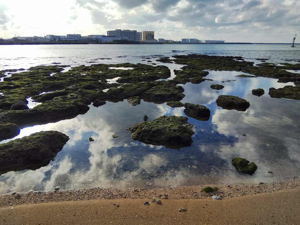 食後すぐに「展望台行き」のバス乗り場まで戻って、12時半頃発のバスに乗車し「名護城公園天上展望台」に到着しました。