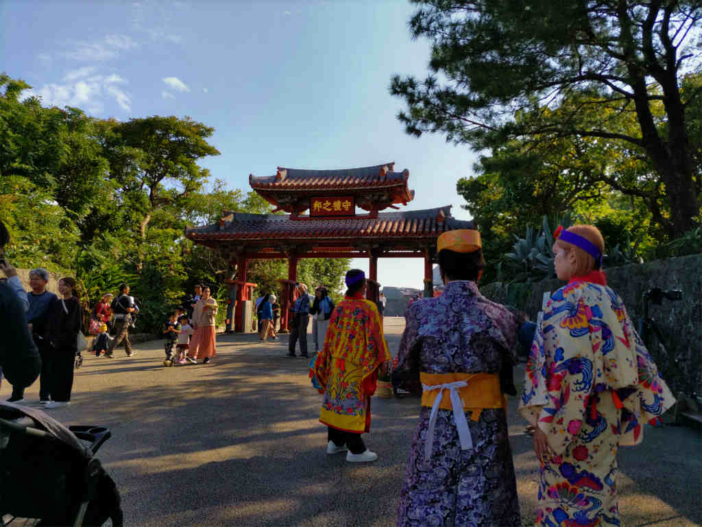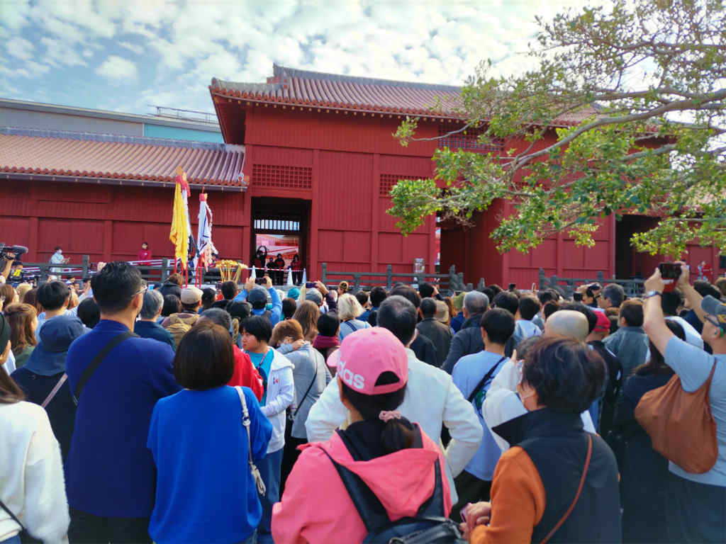 首里城の入口前で、国王と王妃の行列の儀式が、何か行われているようだったんですが、人が多過ぎて全く見れませんでした。