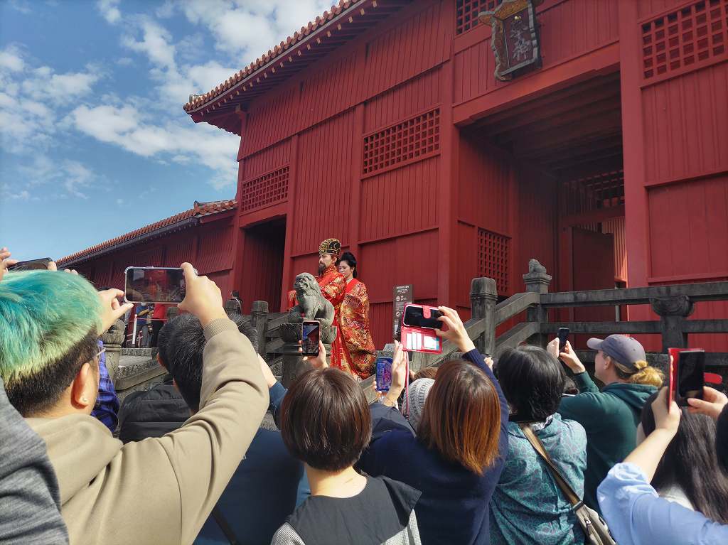 首里城内の門の前では、王様・姫様の儀式が始まり、少し見てたんですが、人が多すぎてあまり見えなったので、ここから離れて「西のアザナ」へ行って、那覇市内を見た後「守礼門」から通り直して駅へと向かいました。