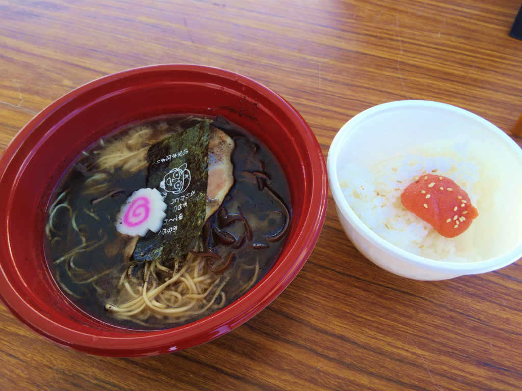 昼ご飯は、会場内に出ているラーメン店で明太ご飯とセットになっているのを頂きました。