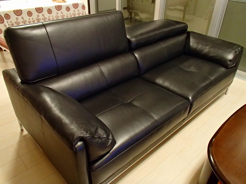 このソファーは足元が11cmと高く「ルンバ」が通れる高さで、頭のリクライニングが出来て倒せるのでテーブルでご飯を食べる時もTVを見るのに邪魔にならず、おまけにコーディネートを考えていた黒色の上、お値段も手頃と申し分の無いソファーです。