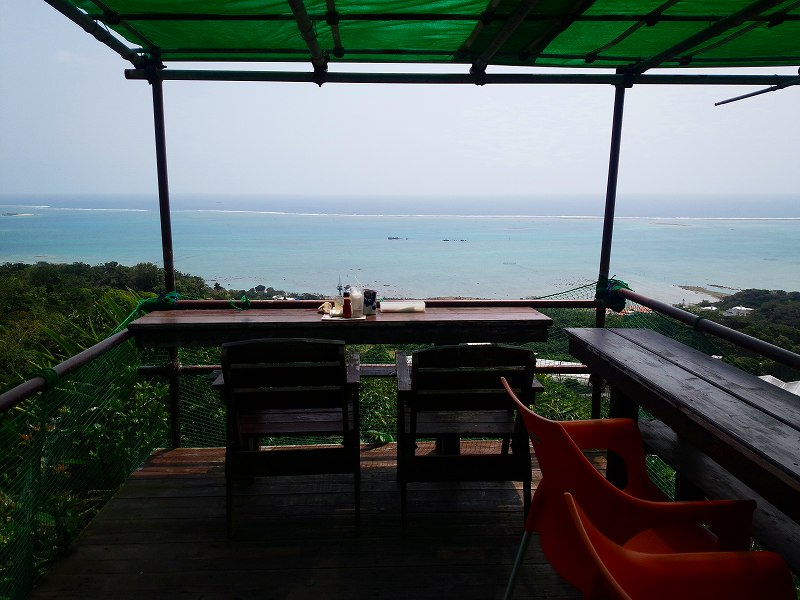 折角なので、崖の先端に突き出したテラス席に座って見ました。