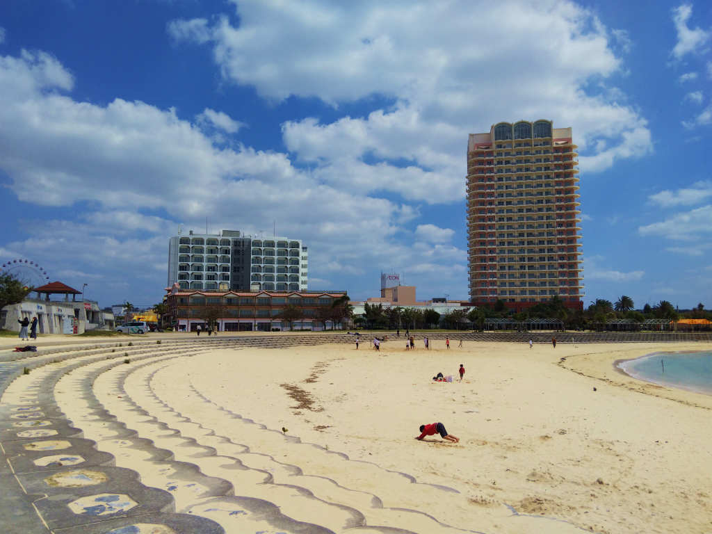 食後は唇を気にしながらも一応散歩して「サンセットビーチ」を通ってイオン北谷店で買い物して帰りました。