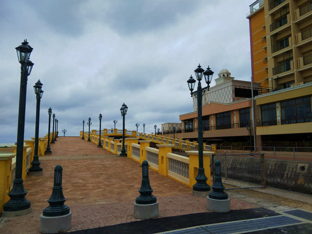海のすぐ横に流れている川沿いの道が、ヨーロッパ風の歩道に改装されている途中でした。