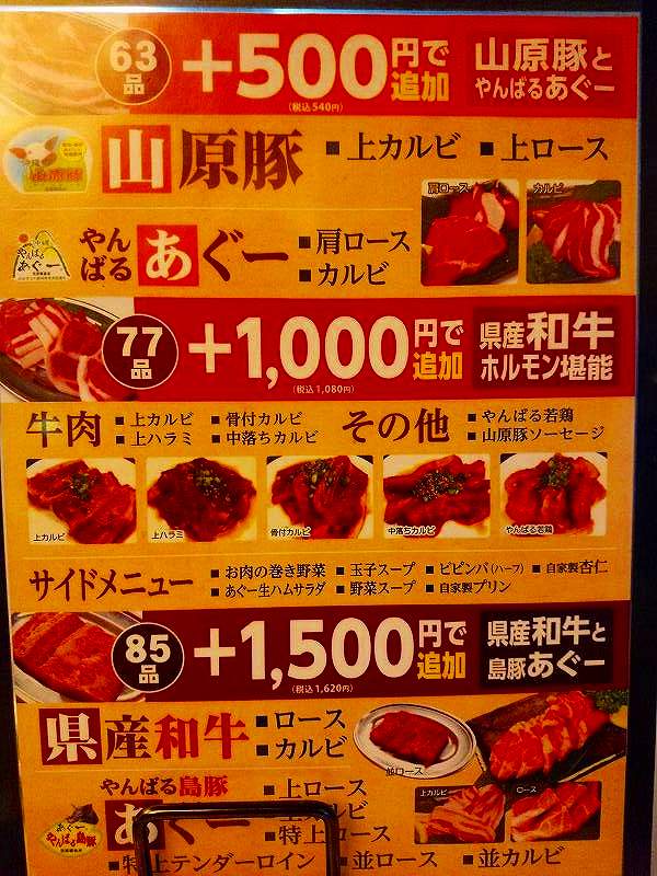 一番高いコースを頼んだので、すべてのメニューから選べたので、取り敢えず一番高い県産上カルビとか上ロースとかを順番に頼んだんですが、今一つなお肉でガッカリでした。