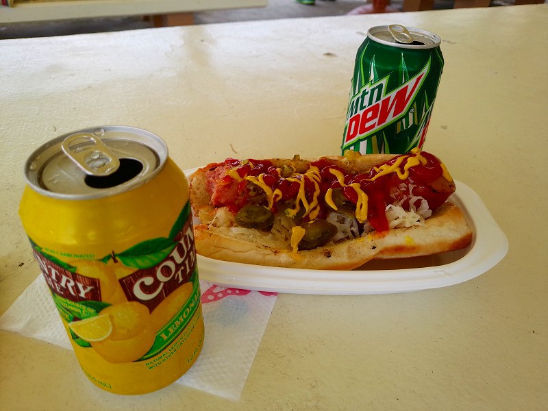 今回 出店している米軍主催の出店ではドルのみ利用のようで、皆両替して買ってたんですが、私達は面倒なので円で買える「ジャンボホットドック」を購入して食べました。