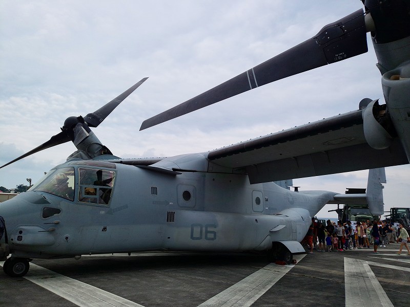 軍用機なども展示されていたんですが、中でも「オスプレイ」が人気で皆並んで乗ってました。