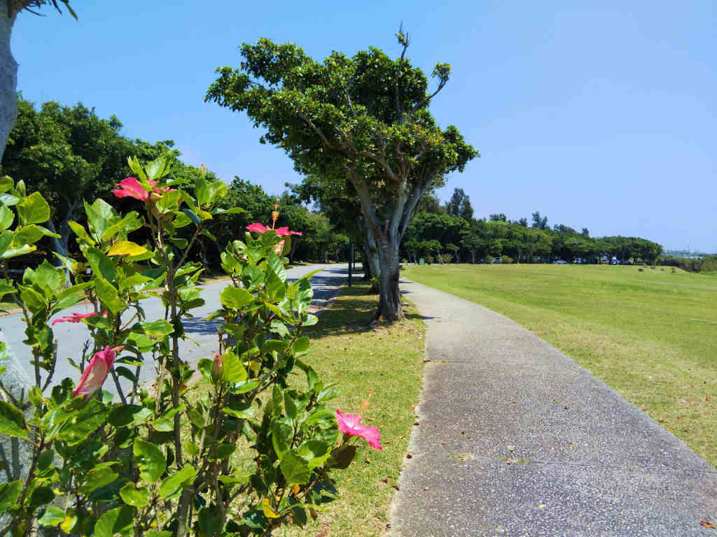 「ホテル日航アリビラ」のちょっと手前にある「Gala青い海」の前の道路沿いで海を眺めながら頂きました。