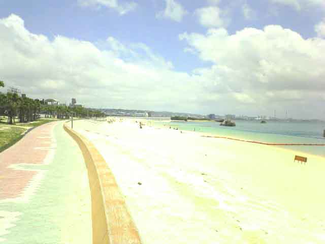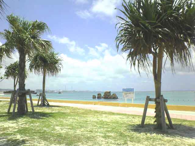 今日は、天気予報で晴れだと言っていたので、スポーツジムの帰りにどうしても海で昼食を取りたいと思い、北谷のアラハビーチに行って見ました。