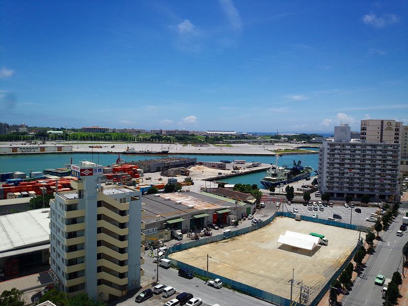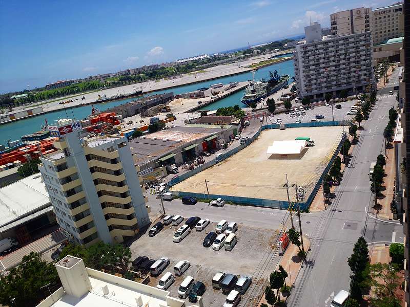 丁度 空港の飛行機の発着地点越しに「慶良間諸島」も見えなくなる位置に建ちます。
