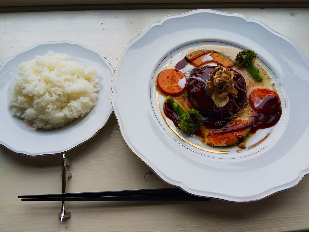 私達は「ハンバーグ」ランチを頼んだんですが、サラダ・スープ・小鉢3種・コーヒー+サービスでデザートも付けてもらいました。