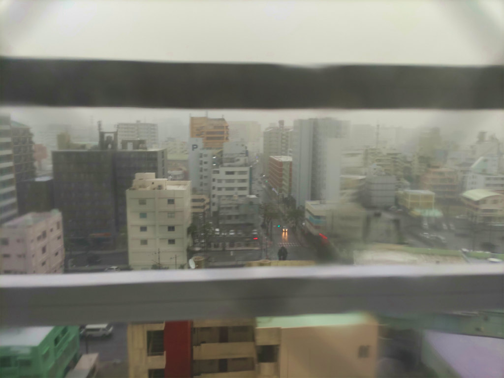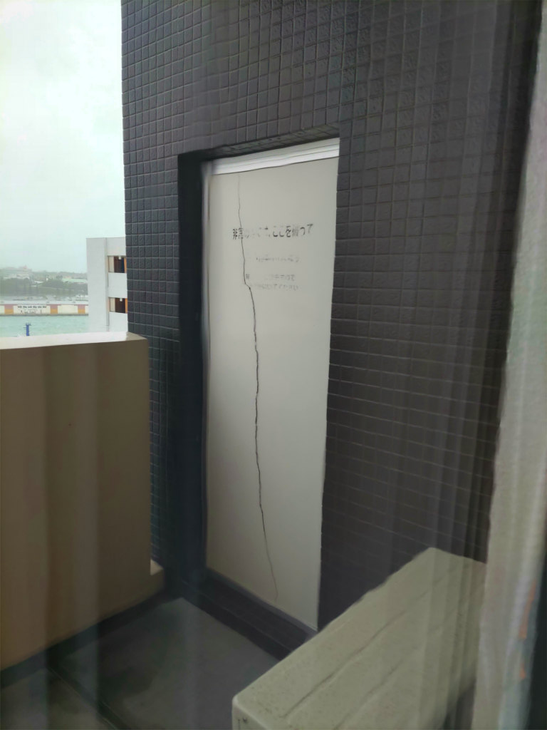 管理会社へメールで連絡して写真を送ると、台風通過後に保険で直すとの返答が来ました。